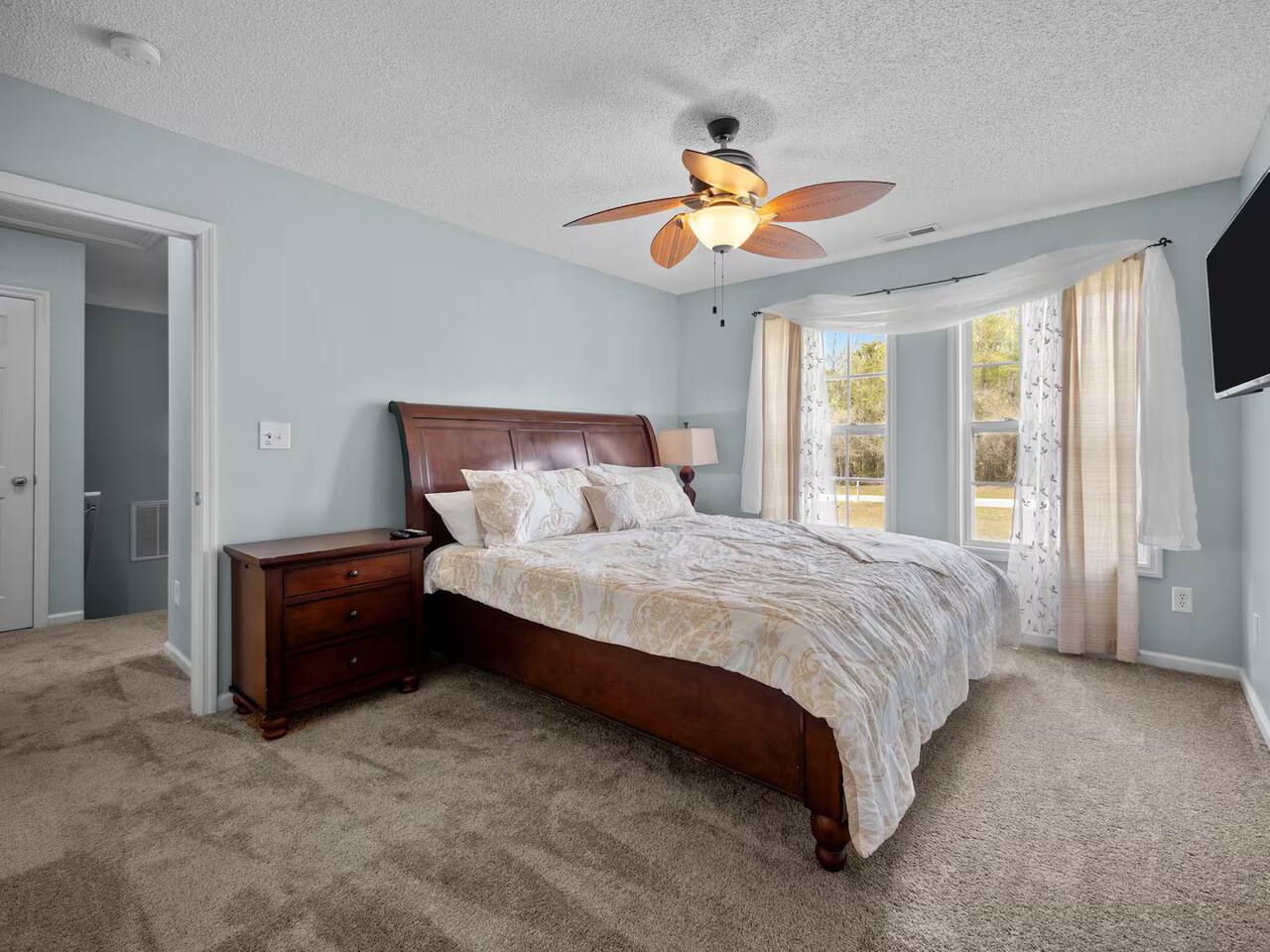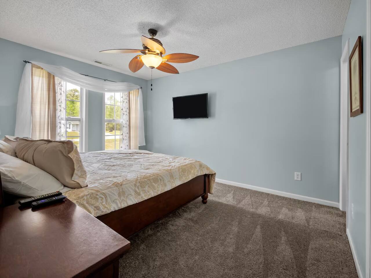 Welcome to your ultimate Jacksonville, North Carolina getaway! Our inviting two-story home is designed for relaxation and enjoyment, offering everything you need for a memorable stay. Dogs welcome. No cats. Accommodation: This spacious retreat comfortably sleeps 8 guests in beautifully appointed bedrooms, with additional sleeping arrangements available via air mattresses for up to 2 more guests. Bedrooms: Each thoughtfully decorated bedroom provides a serene and restful environment, ensuring a peaceful night’s sleep for everyone. Entertainment: Relax in our cozy living room, equipped with two TVs, perfect for movie nights or catching up on your favorite shows. Enjoy family game nights or unwind with a good book in our comfortable common areas. Outdoor Space: The fenced backyard is ideal for children or pets to play safely, while the back deck is a great spot for morning coffee or soaking up the coastal sun. Convenience: The two-car garage provides easy parking, and an on-site washer and dryer ensure you can pack light and keep clothes fresh throughout your stay. Kitchen: The full kitchen features modern appliances and ample dining space, making it easy to prepare everything from quick breakfasts to gourmet dinners. Location: Situated in the desirable Liberty Hills neighborhood, our home offers easy access to local attractions, dining, and recreational activities. Explore nearby beaches, visit the Marine Corps Base Camp Lejeune, or enjoy a stroll through downtown Jacksonville. Experience the perfect blend of comfort, convenience, and coastal charm at our Jacksonville retreat. Book your stay today and create unforgettable memories with your loved ones! About Jacksonville, North Carolina: Jacksonville, North Carolina, is a vibrant city located near the southeastern coast of the state, known for its strong military presence and welcoming community. Home to Marine Corps Base Camp Lejeune, Jacksonville is rich in military history and offers a variety of activities for visitors of all ages. With its proximity to both the coast and inland attractions, Jacksonville serves as a convenient base for exploring the region. Things to Do Around Town: Jacksonville boasts a variety of parks and outdoor spaces, perfect for enjoying the natural beauty of the area. Take a walk along the New River Waterfront Park, where you can enjoy picturesque views of the river, or visit Lejeune Memorial Gardens, which honors the sacrifices of U.S. military personnel with thoughtful memorials and serene surroundings. For history enthusiasts, the Montford Point Marine Museum offers insight into the history of African American Marines, while the nearby Beirut Memorial commemorates the lives lost in the 1983 Beirut barracks bombing. Jacksonville also offers family-friendly attractions such as the Lynnwood Park Zoo, where visitors can get up close with a variety of animals, and the Zing Zumm Children’s Museum, which provides hands-on exhibits for younger visitors. The city is also known for its dining scene, with a wide range of restaurants offering everything from Southern comfort food to international cuisine. Jacksonville’s proximity to beautiful beaches, such as those in Topsail Island and Emerald Isle, makes it easy to enjoy a day of sun and surf. Whether you're interested in exploring military history, enjoying outdoor activities, or simply relaxing in a friendly and lively community, Jacksonville offers a diverse array of experiences for visitors.